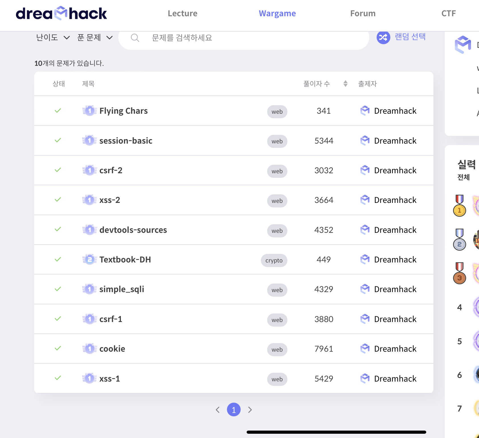 뭐 그래도 재미있었다. 공부한 양에 비해서 2개 푼거면 만족할만한 수준은 되었다. 1개 푼사람하고 0개 푼사람이 엄청 많아서 의외로 상위권을 했다는것도 좀 웃기기긴 했지만(본선 진출은 10위 이내라 못함). 기존에 js공부를 좀 한게 도움이 된 듯하다. 내 코드에는 eval을 쓰지 말던지 해야지… ㅎㅎ 이젠 또 nodejs 랑 react 공부하러 튀는게 좋을 듯 싶다.