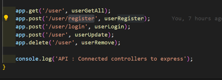 1~4번을 user.controller.js에 때려박고, 컨트롤러에서 만들어진 몇몇 기능들을 바로 express로 넘겨주었다.