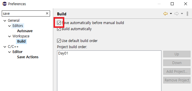 이거 두개를 활성화 해두어야지 좀 편할 것이다. 안그러면 한번 실행할 때마다 따로 저장을 해야하하는 문제가 생긴다. 본인 취향에 따라 몇 초 마다 자동으로 세이브해주는 것도 나쁘지 않다.(뭐 더러운 에디터 소리를 듣고 싶지 않다면 키지 않아도 좋다.)