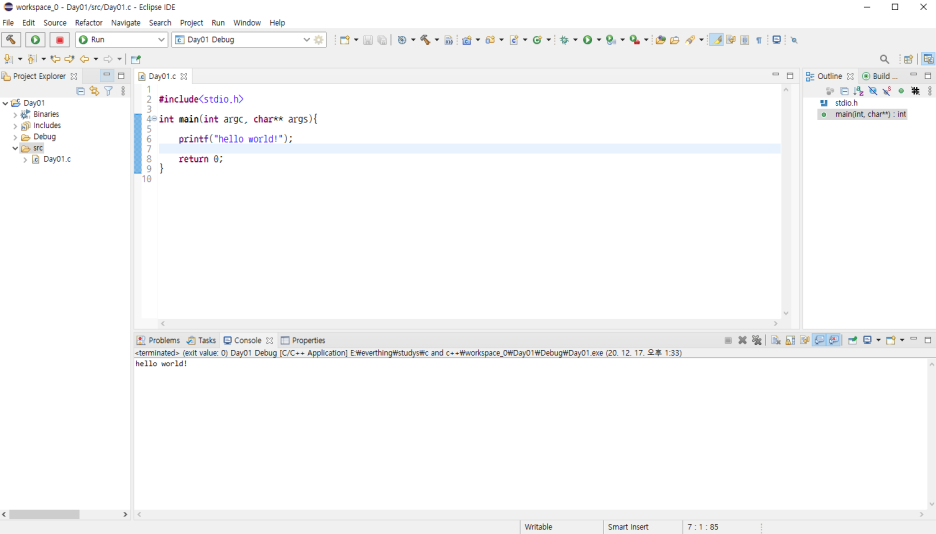 | <C> 기본예제 Day01 - Hello world! (0) | 2020.12.21 |