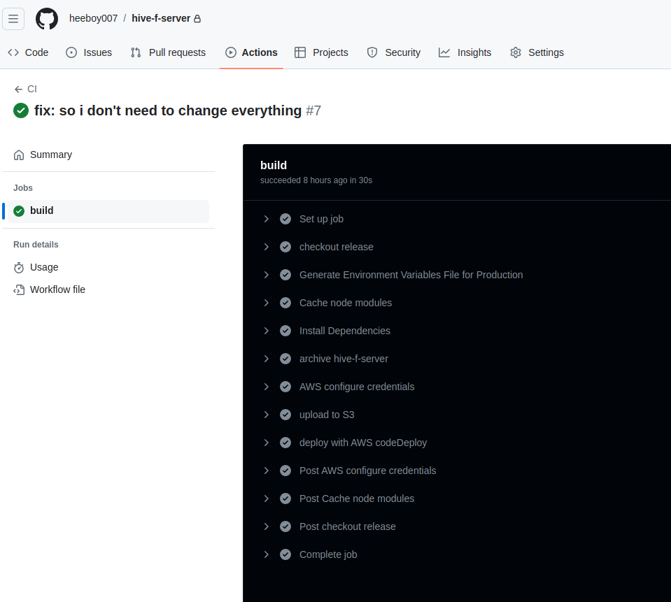 하여간에... appspec.yml을 후딱 고쳐주도록하자. .github/workflow 안에 있는 녀석들은 github측에서 실행된다면, appspec.yml은 aws에 배포된 이후, e2c에서 실행되는 녀석이라 생각하면 된다. 지금은 단순하게 어느 디렉토리에 tar파일을 옮기고 압축해제 해달라고만 했다.