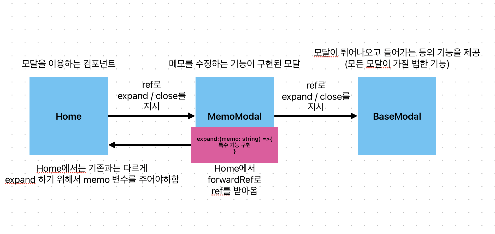 4. expand를 만들어서 아래의 BaseModal을 실제로 expand하는 것 말고도 memo를 받아오고 저장하기를 누를때의 handler를 만드는 등의 추가적인 조작을 할 수 있음