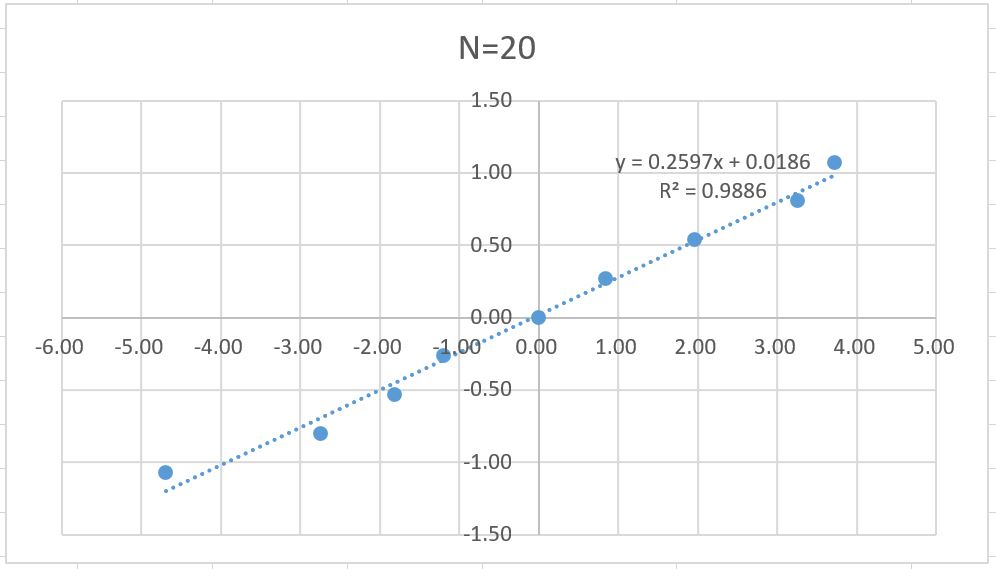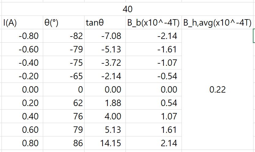 N = 40의 그래프도 그에 해당한다. 표본이 tan가 90도에 가까울수록 급격하게 함숫값이 변하는 것 때문에 크게 벗어나 있다. N = 40일 때 한정으로, -0.6A~0.6A 만큼을 측정하게 되어 있다. 이는 아마 0.8A일 때의 값의 편차가 크기 때문으로 추정된다. [3]